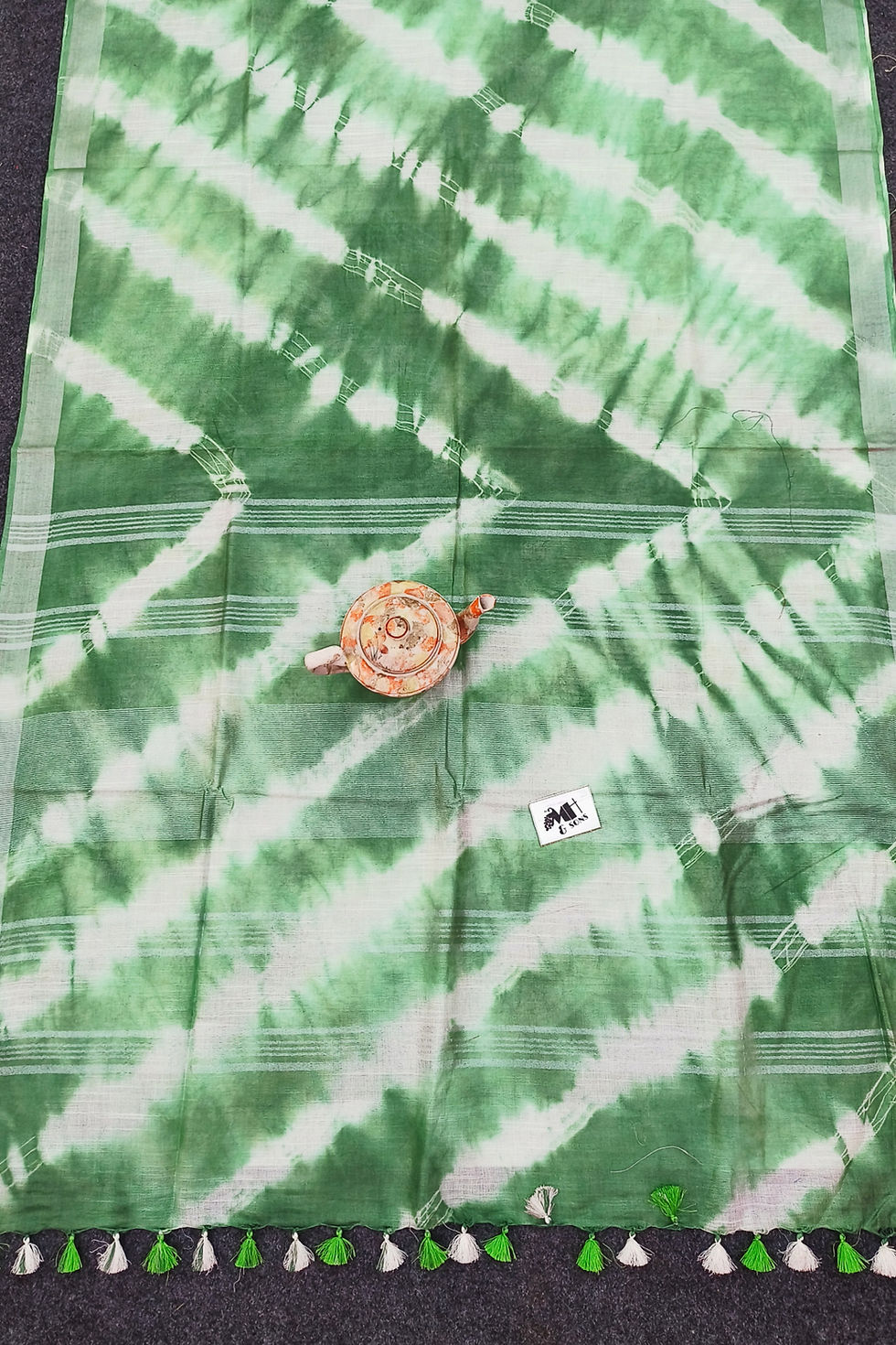 Linen Cotton Tie-Dye Saree | Blue & Green